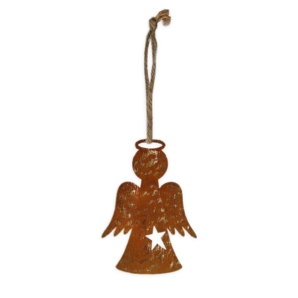Andílek z kovu s rustikálním povrchem – něžná a tradiční ozdoba do každého domova.