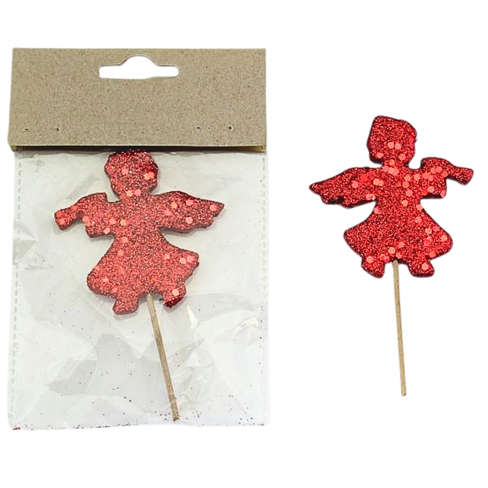 Anděl zápich pvc/dřevo 2ks/6x12cm červená