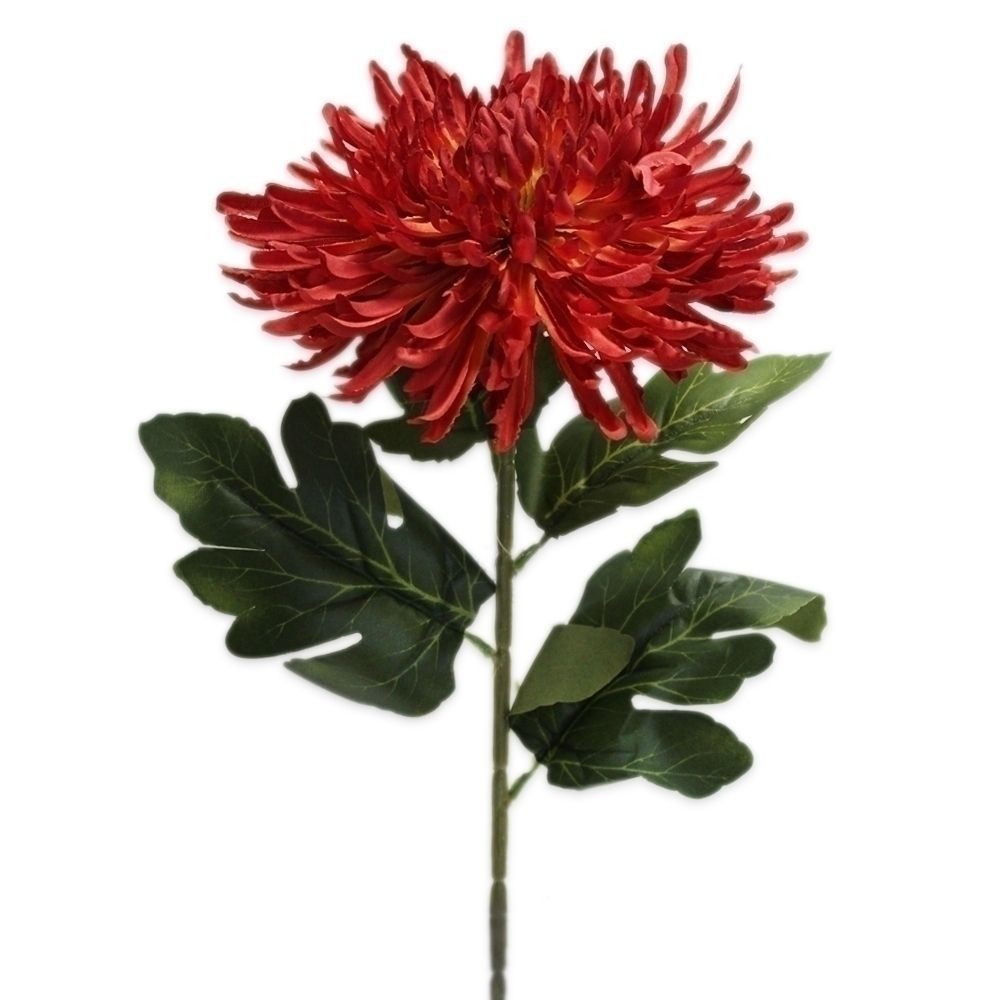 Sytě červená chryzánthéma v textilním provedení zaujme na první pohled. Perfektní volba pro podzimní nebo sváteční výzdobu, kde dodá eleganci a bohatost.