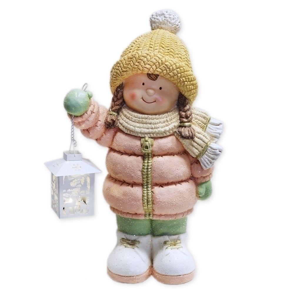 Velká soška dívky s LED osvětlením je okouzlující dekorací. Skvěle se hodí jako dominantní prvek zimní výzdoby.