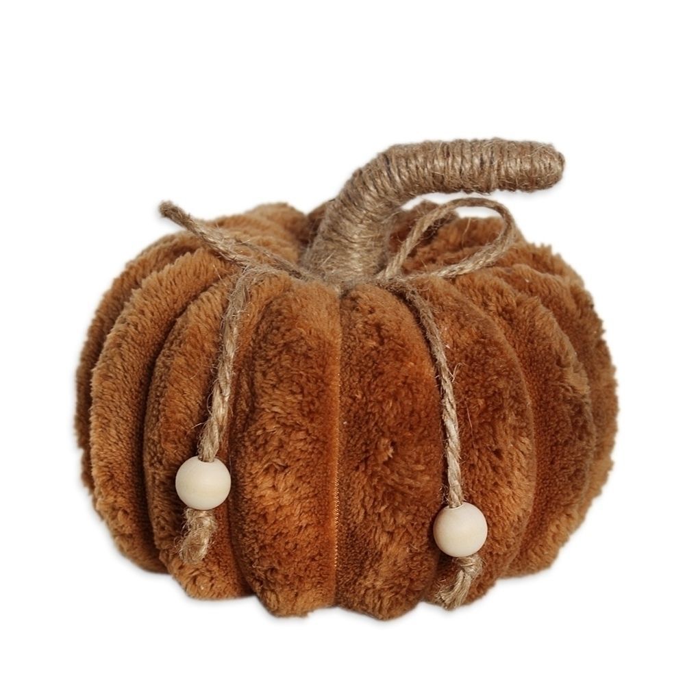 Textilní dýně v hnědé barvě – měkká podzimní dekorace na stůl, polici nebo okenní parapet.