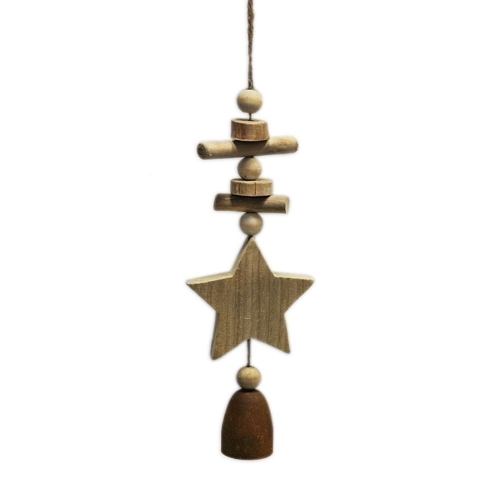 Stylová dřevěná hvězda s kovovými prvky na zavěšení. Elegantní vánoční ozdoba.