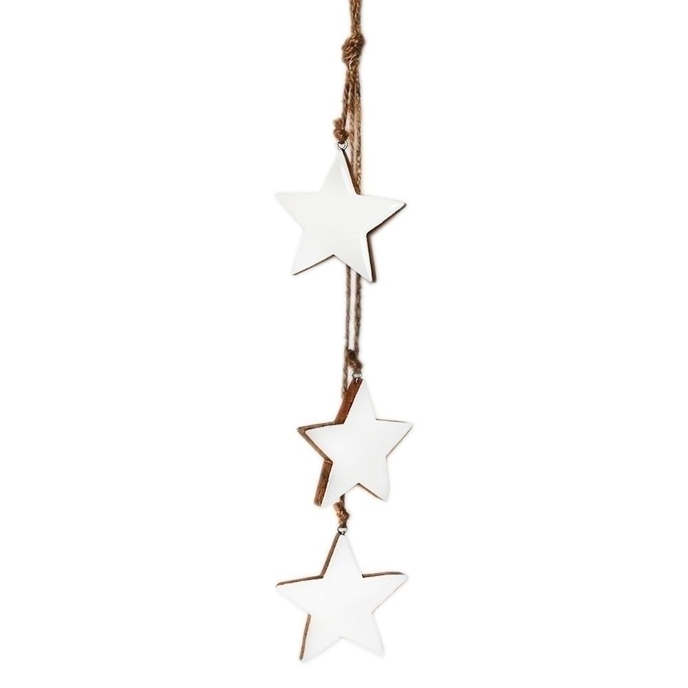 Dřevěná závěsná dekorace s hvězdami – jemná patina a přírodní styl v jednom.