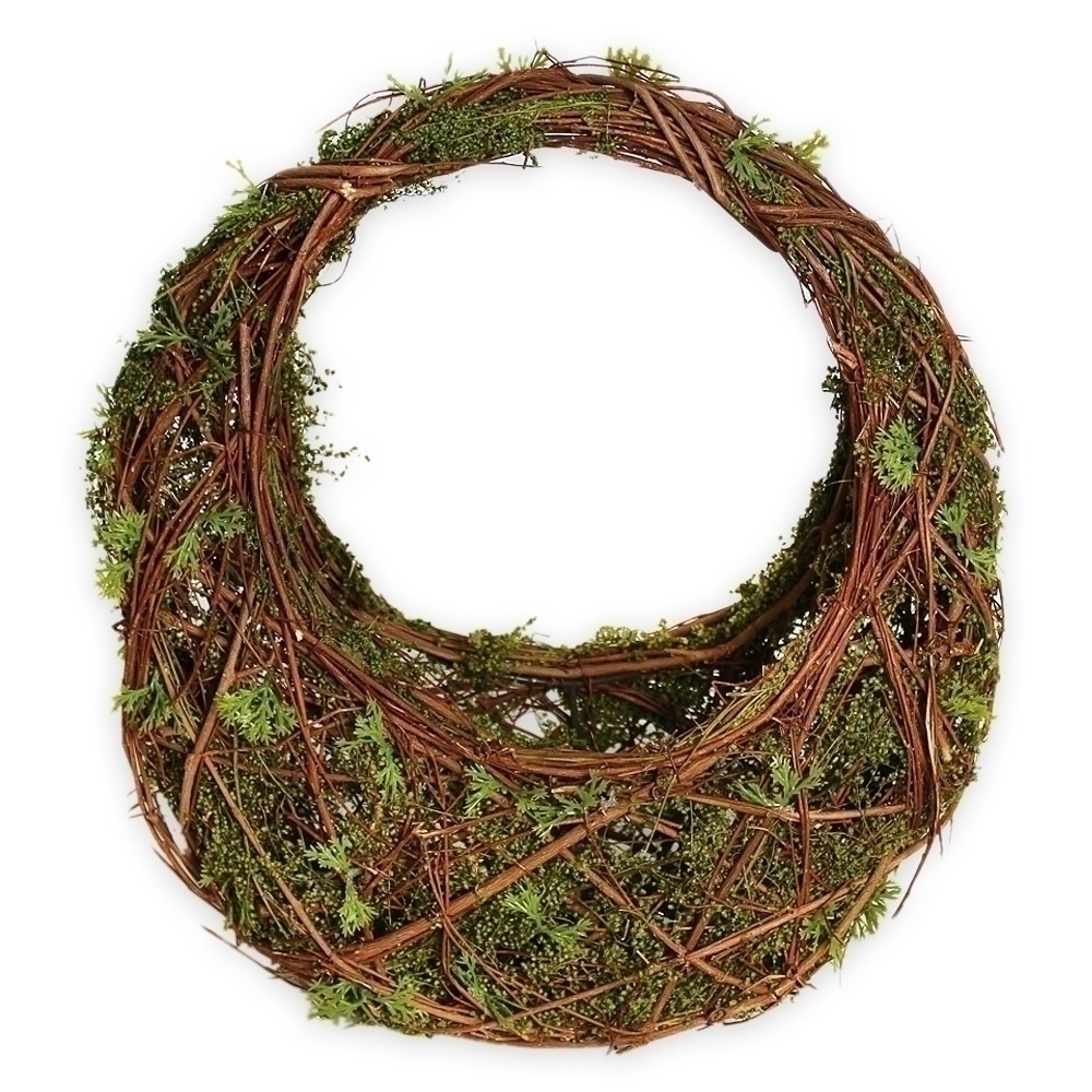 Větší proutěný koš s dekorem mechu poskytuje perfektní základ pro přírodní aranžmá. Hodí se na květiny, dekorace i jako samostatný prvek.