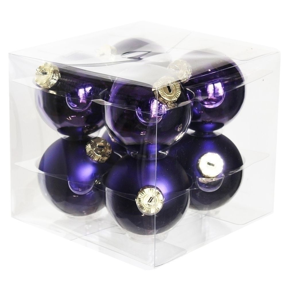 Fialové koule o průměru 8 cm dodají stromku výraz a eleganci.