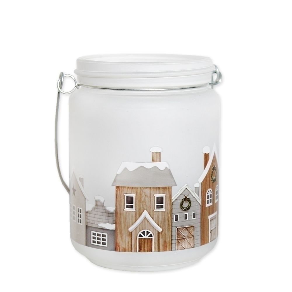 Malá skleněná lucerna v hnědé barvě – jemný zdroj světla pro romantickou nebo podzimní atmosféru.