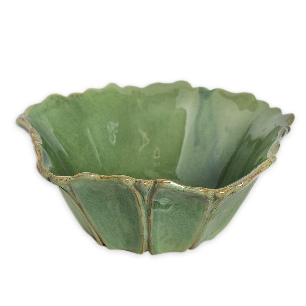 Prostorná porcelánová miska v zelené barvě je vhodná pro servírování salátů, ovoce nebo jako dekorativní prvek na stole. Působí přirozeně a stylově.