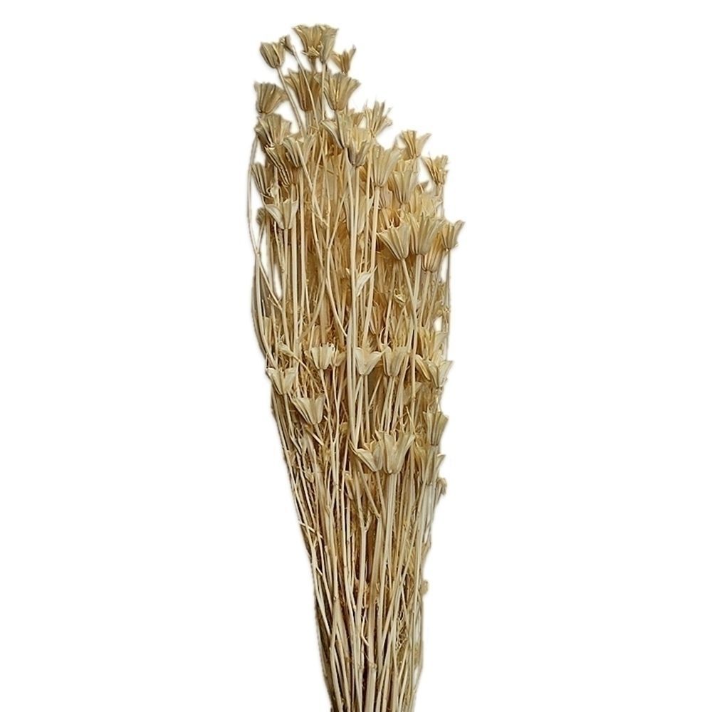 Bělená Nigella dodává aranžmá jemnost a lehkost. Krásná do boho stylu, rustikálního interiéru i svatebních dekorací.