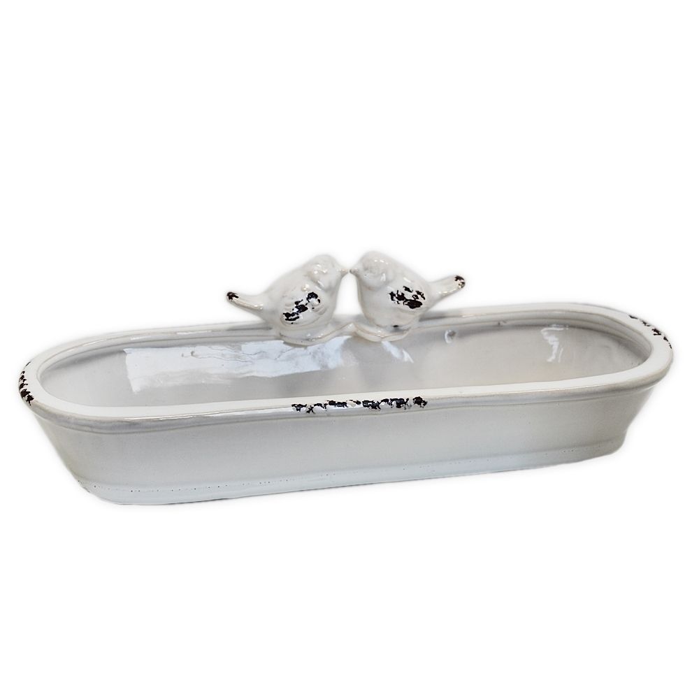 Porcelánové pítko v bílé barvě, vhodné do zahrady.