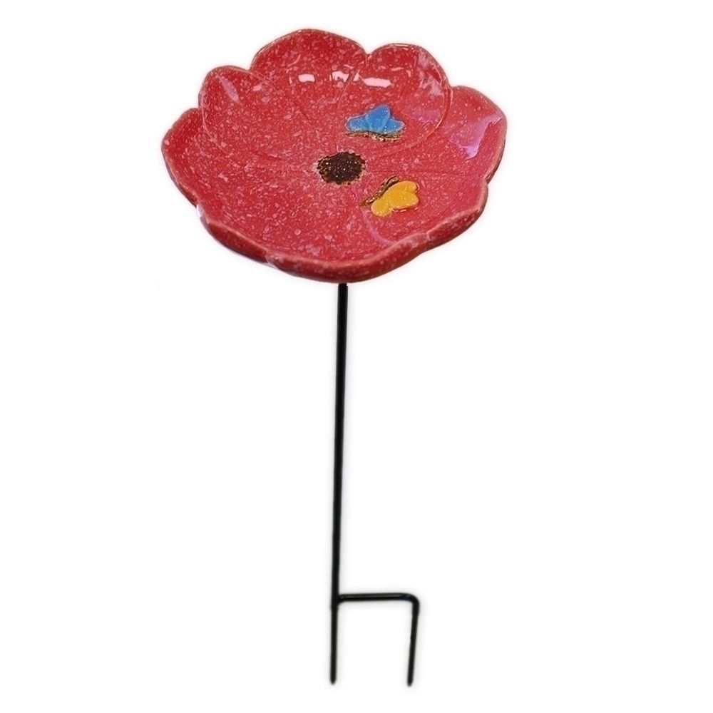 Zápichové porcelánové pítko v červené barvě pro oživení zahrady.