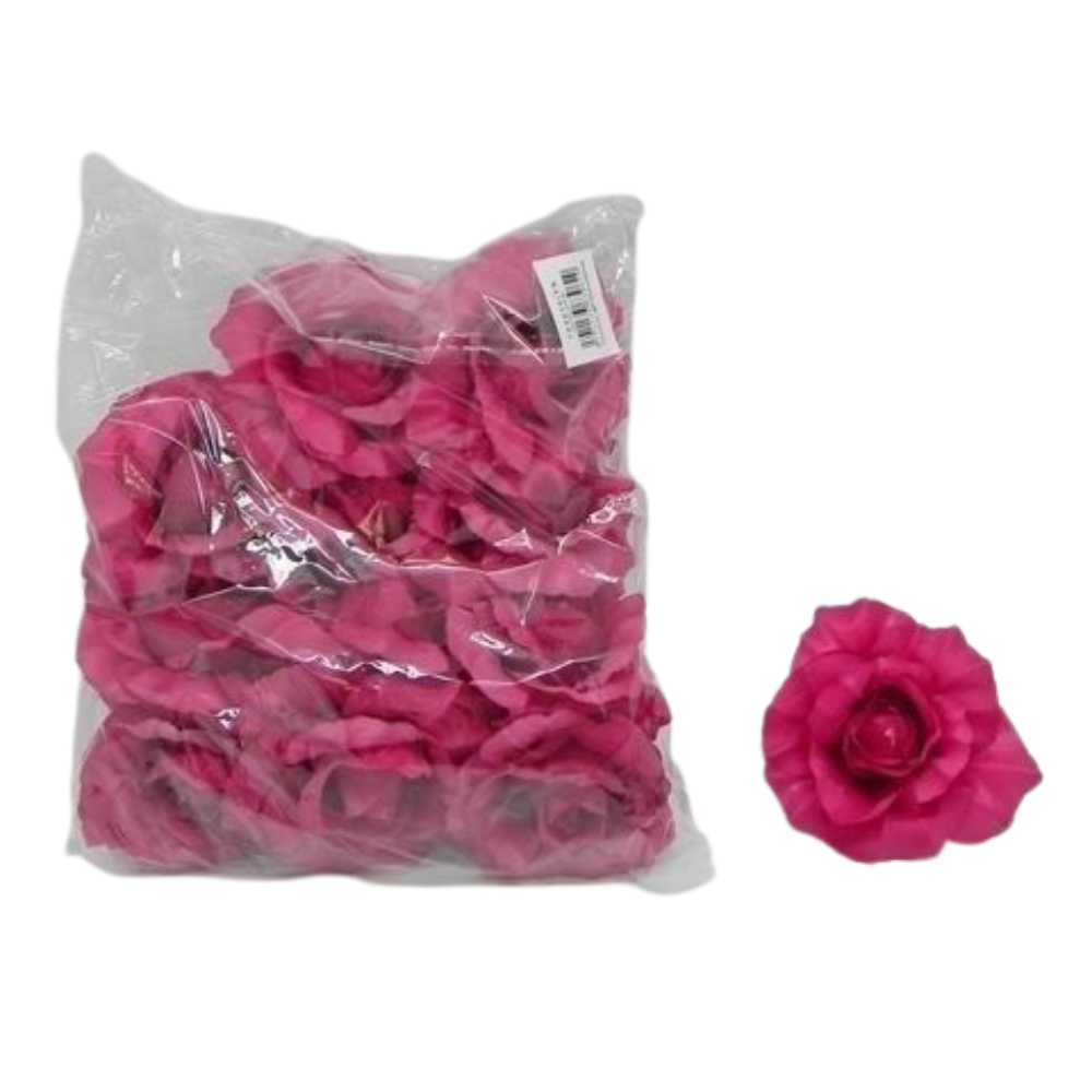Růže hlava textil 12ks/8cm tm.růžová