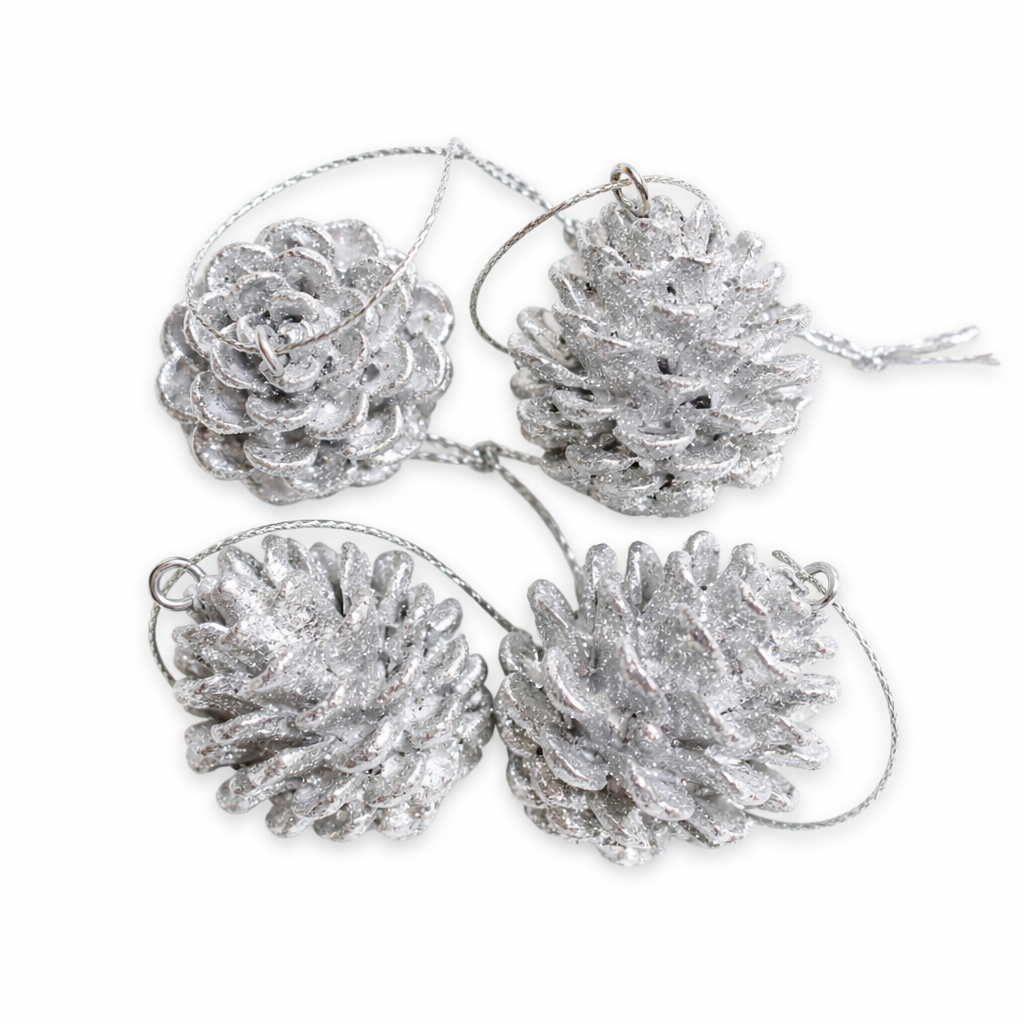 Šišky závěs polyresin 6ks/4cm stříbrná