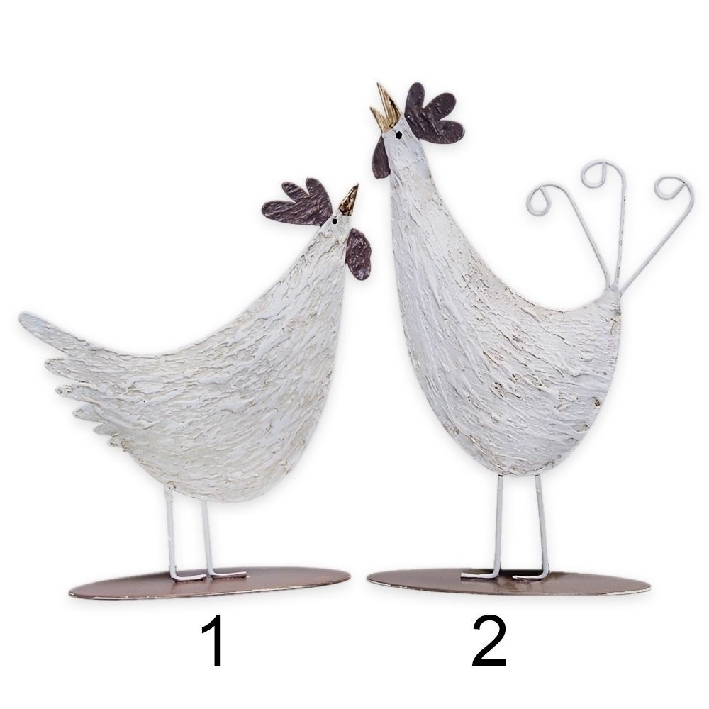 Kovová slepice nebo kohout v mixu variant.