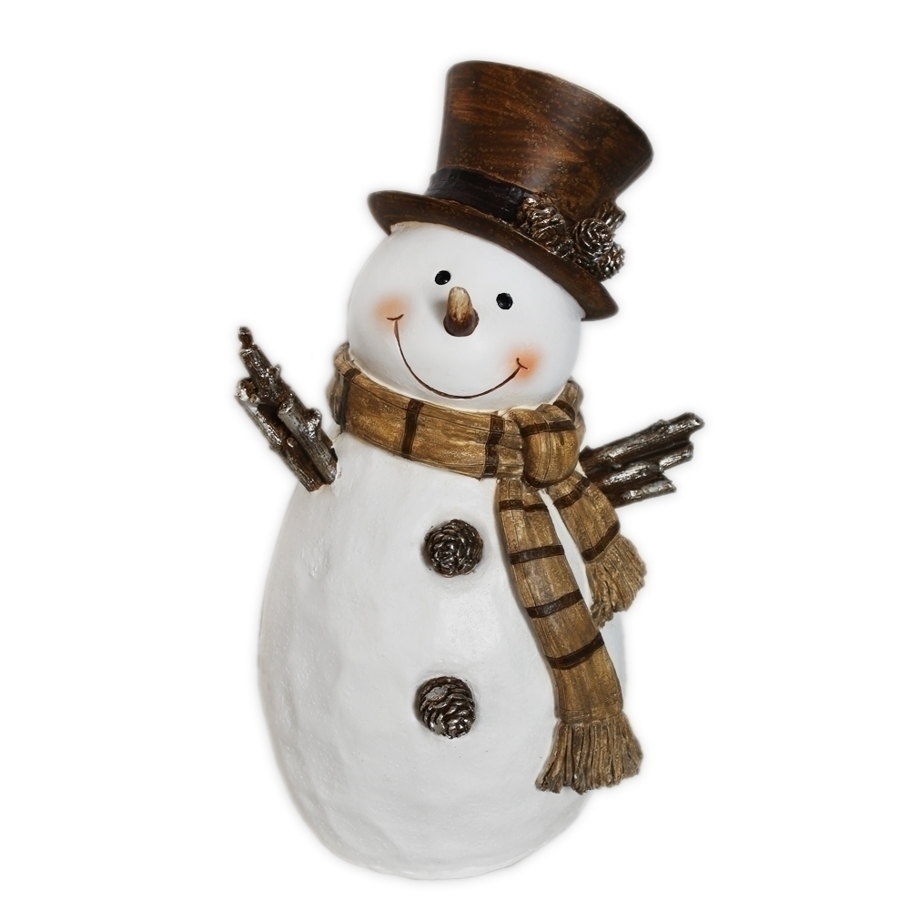 Robustní sněhulák v klasickém zimním stylu vnese do interiéru hravost a sváteční atmosféru. Skvělý do obýváku i na slavnostní stůl.
