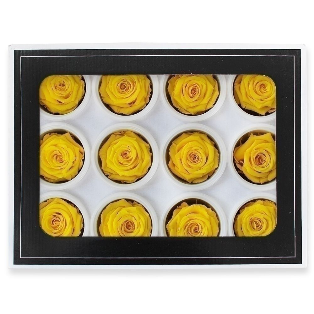 Stabilizovaná růže hlava 12ks/3,5cm žlutá