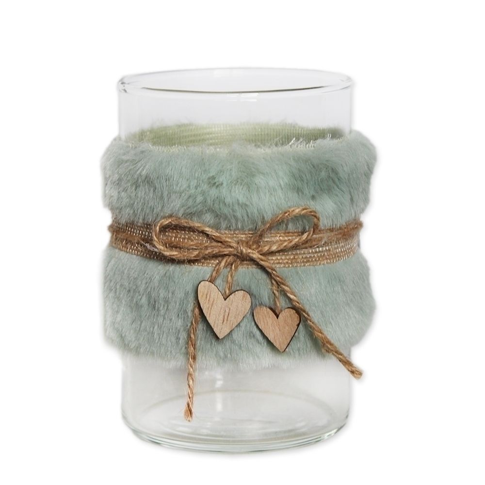 Skleněný svícen v mátové barvě – svěží a moderní doplněk pro interiér i sváteční stůl.