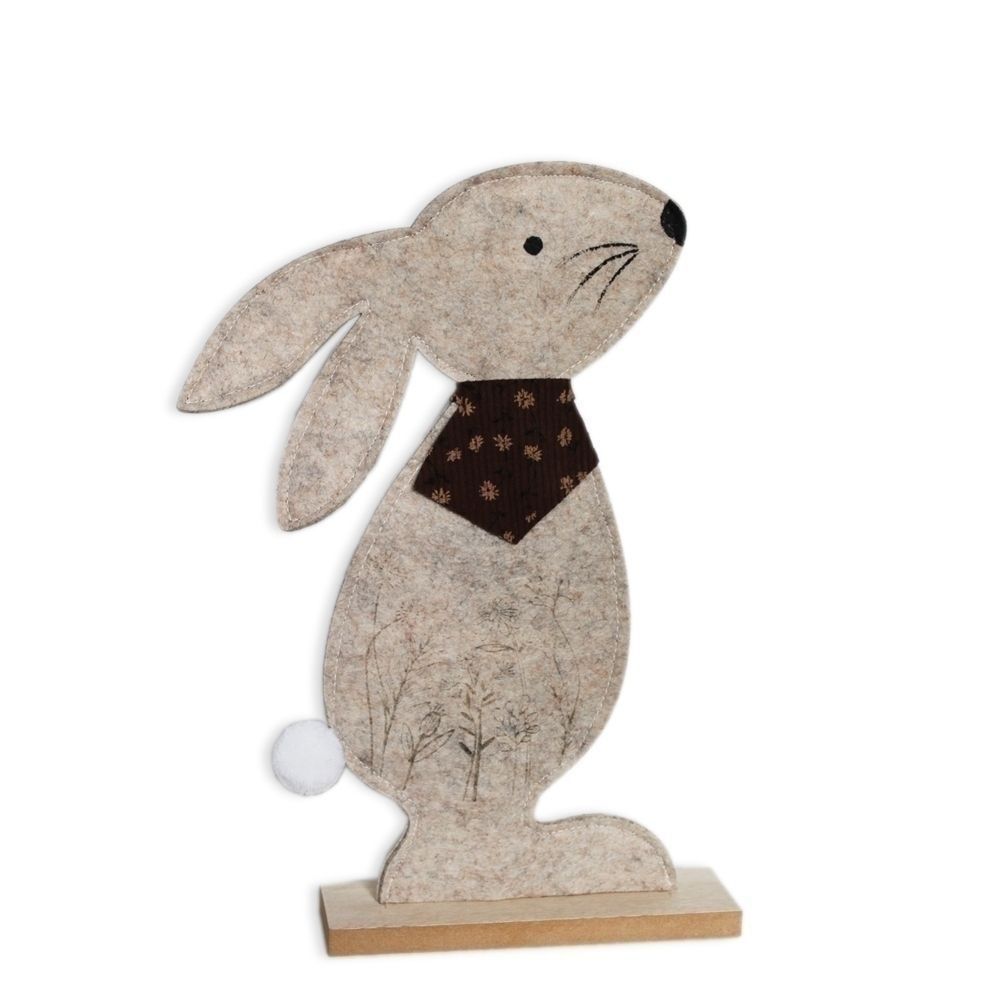 Jemný filcový zajíc v neutrálním odstínu, který se hodí do každého interiéru.
