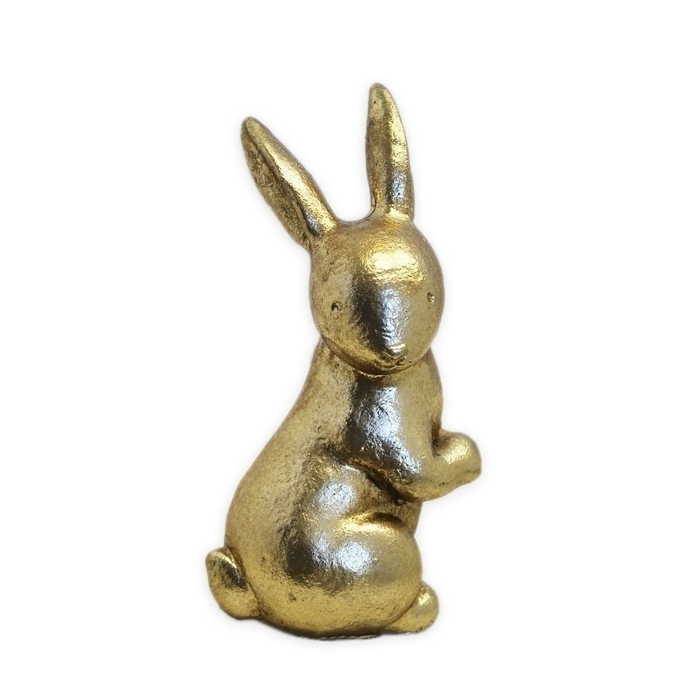 Keramický zajíc ve zlaté barvě, elegantní velikonoční dekorace.