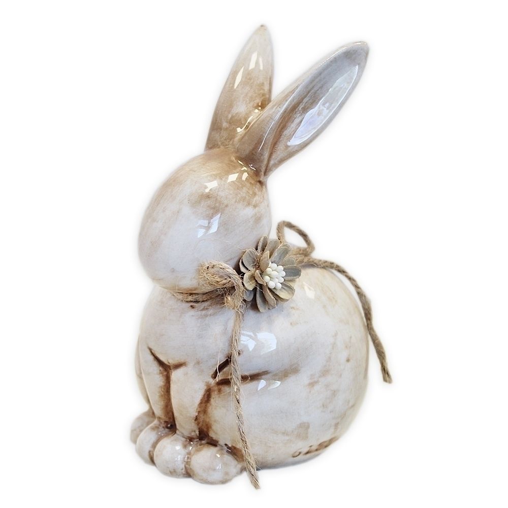 Elegantní keramický zajíc v krémové barvě, ideální velikonoční dekorace.