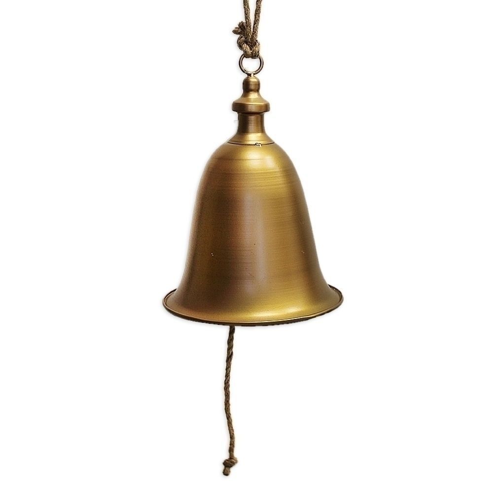 Velký kovový zvonek v zářivém zlatém odstínu. Elegantní dekorace.